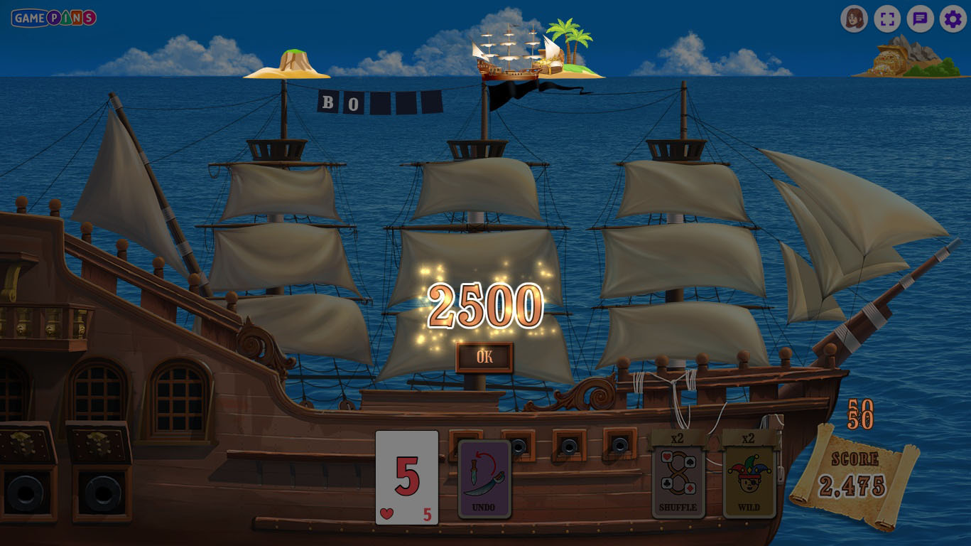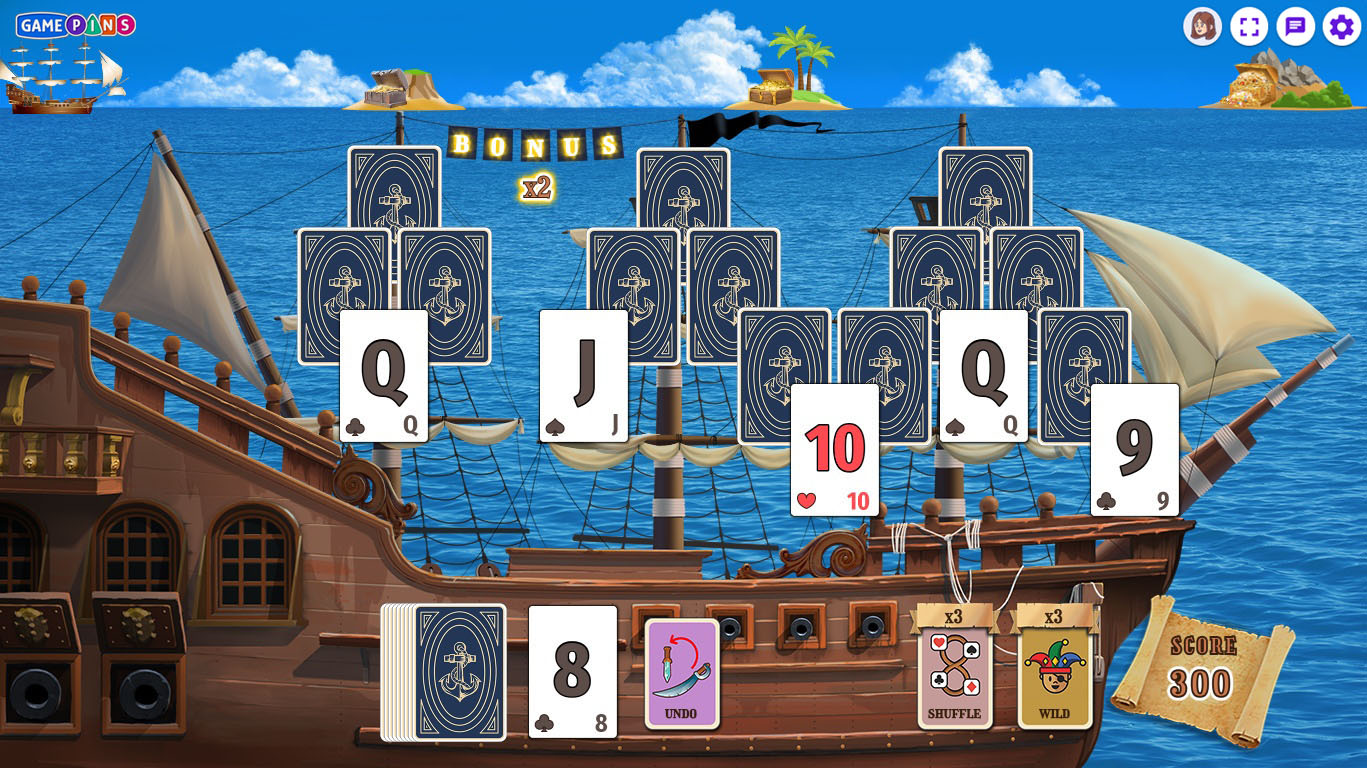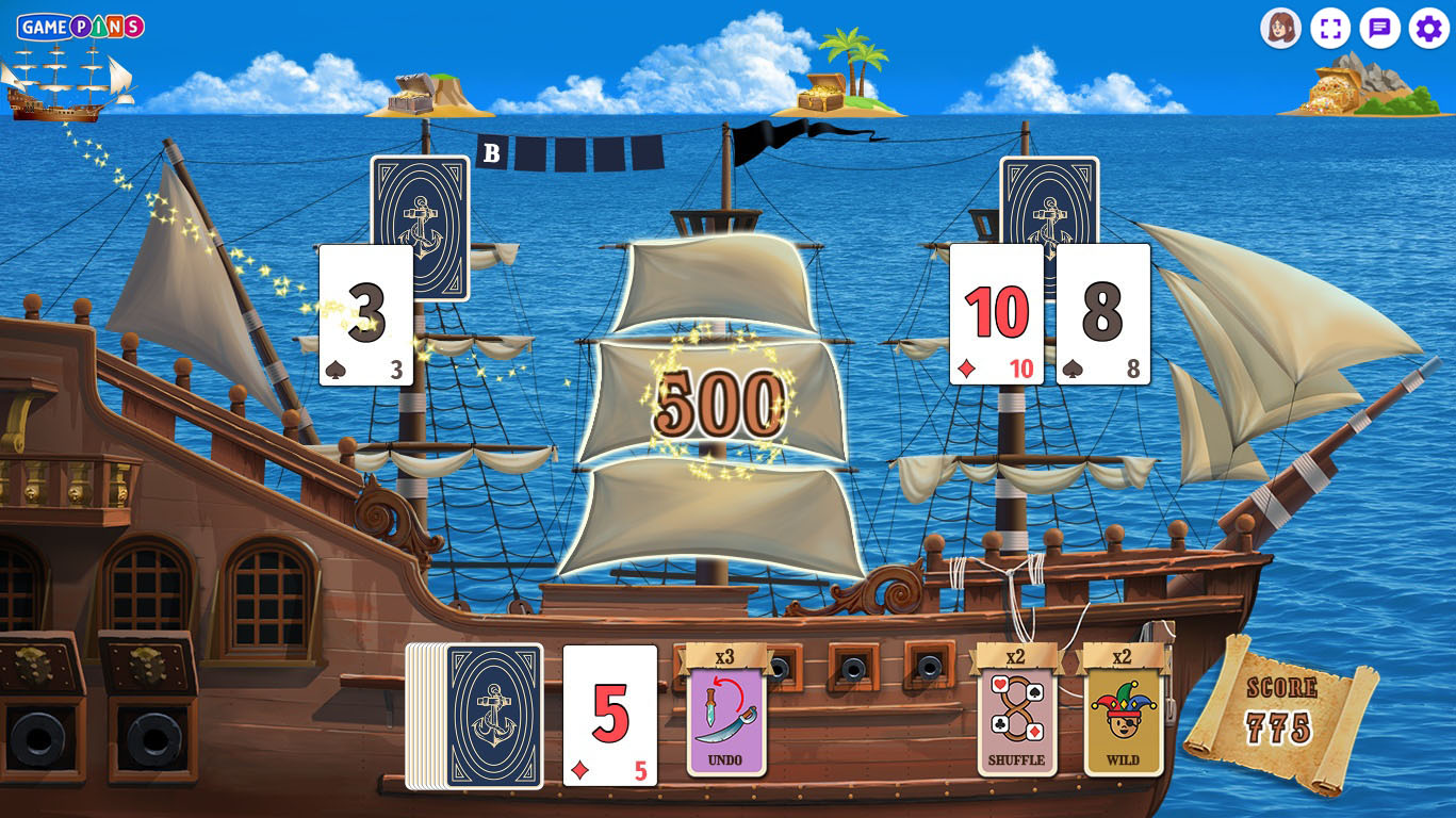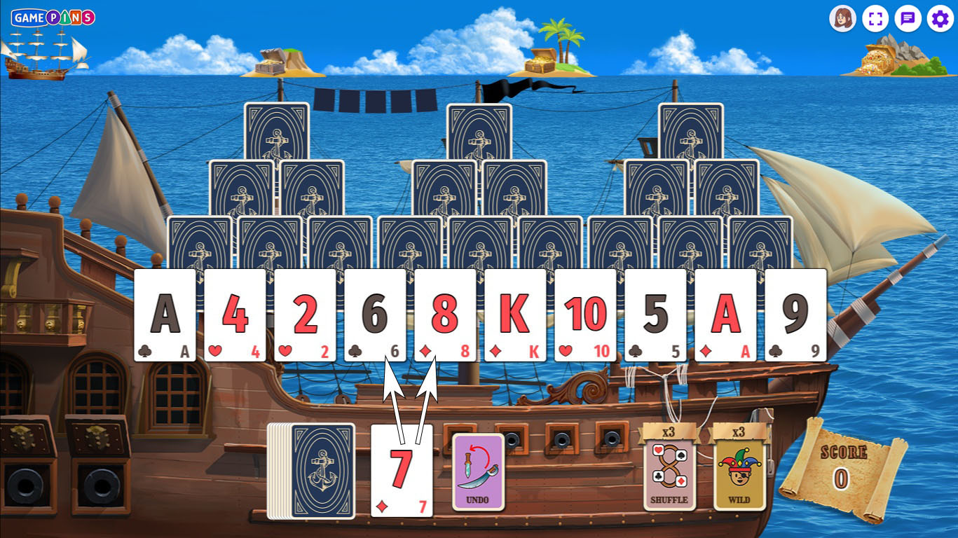 - Hoist the sails of your ship as you clear the top card of each pyramid. Raise all three of your sails to catch a breeze and move your ship!